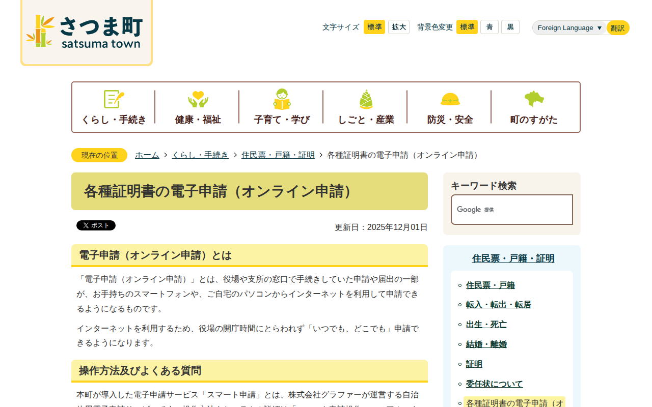 各種証明書の電子申請(オンライン申請)/さつま町公式ホームページ