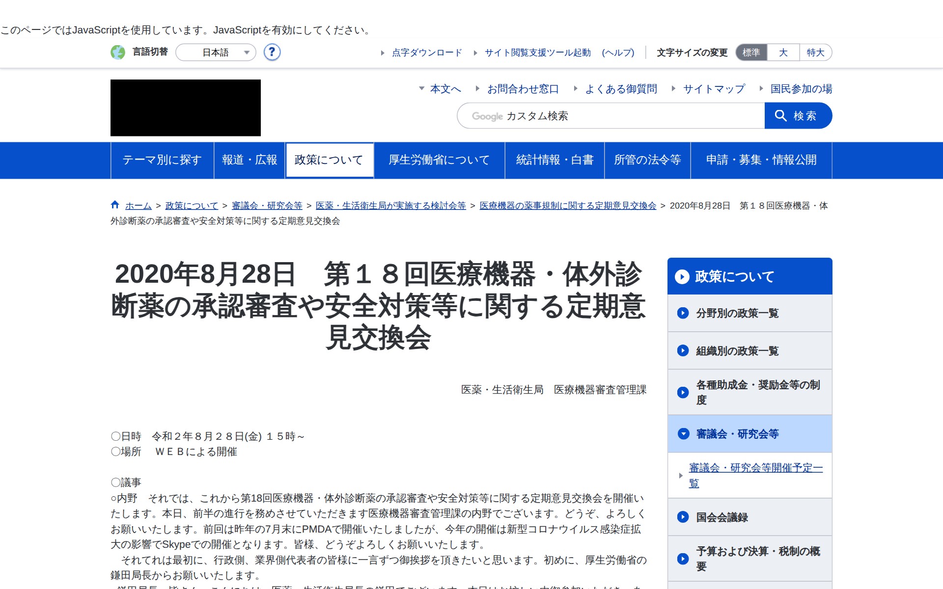 第18回医療機器・体外診断薬の承認審査や安全対策等に関する定期意見交換会 議事録