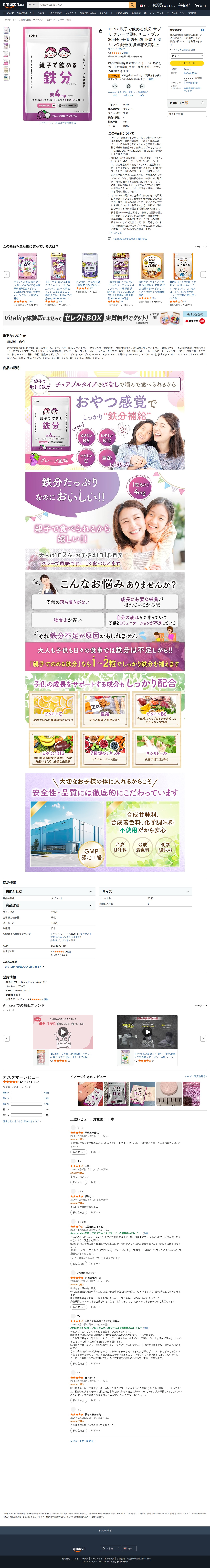 Amazon | TONY 親子で飲める鉄分 サプリ グレープ風味 チュアブル 30日分 子供 鉄分 鉄 亜鉛 ビタミンC 配合 対象年齢2歳以上 | TONY | 鉄分 - 保存されたスクリーンショット
