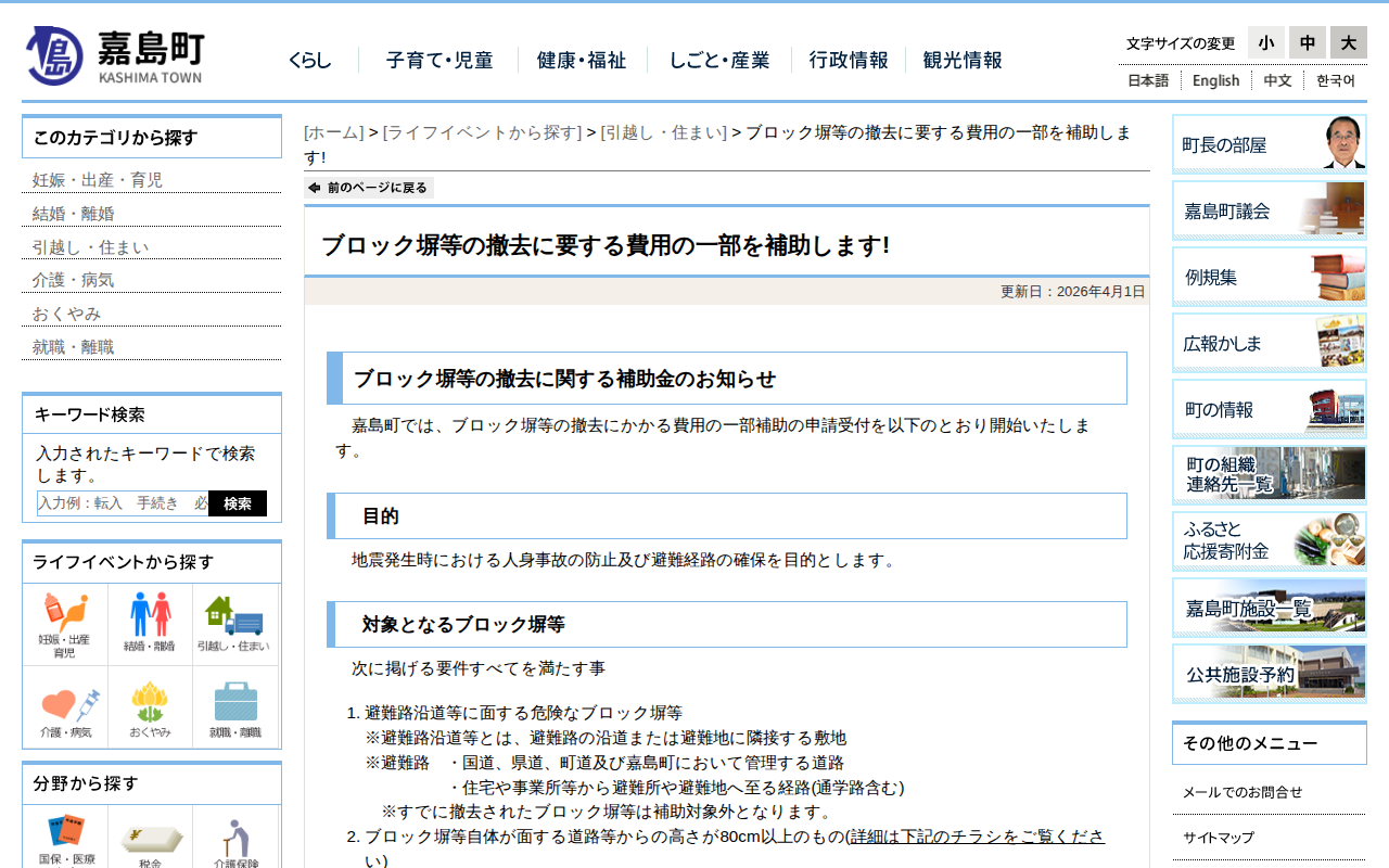 ブロック塀等の撤去に要する費用の一部を補助します! - 引越し・住まい|嘉島町