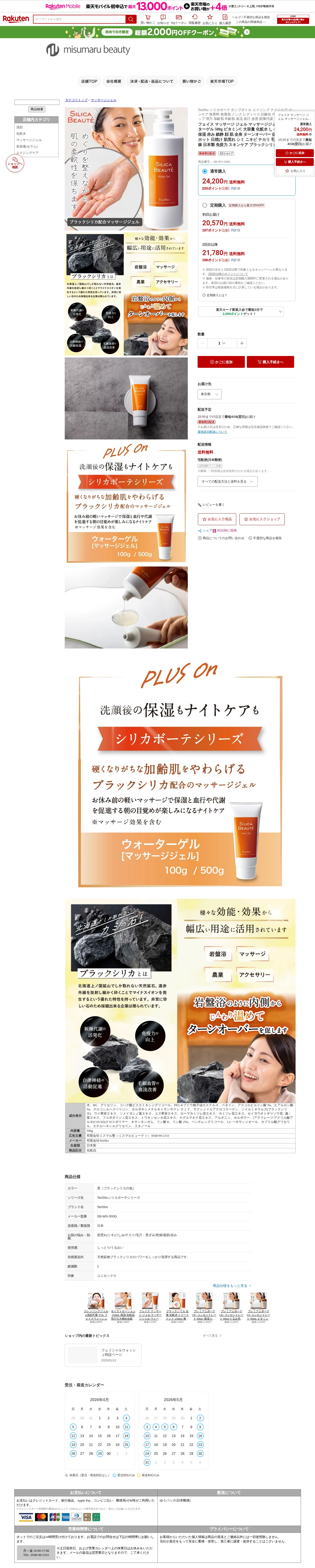 【楽天市場】フェイス マッサージ ジェル マッサージジェル ウォーターゲル 500g ビタミンC 大容量 化粧水 しっとり 潤い 保湿 赤み 鎮静 顔 肌 全身 ターンオーバー 促進 化粧品 ホット 日焼け 肌荒れ シミ ニキビ テカリ 毛穴黒ずみ 乾燥 日本製 免疫力 スキンケア ブラックシリカ:misumaru beauty - 保存されたスクリーンショット