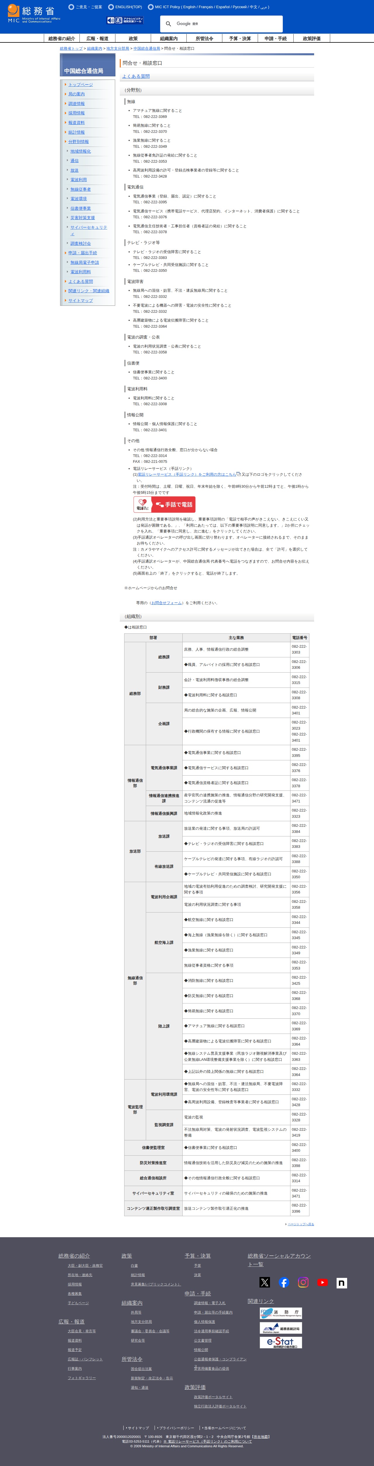 総務省|中国総合通信局|問合せ・相談窓口 - 保存されたスクリーンショット