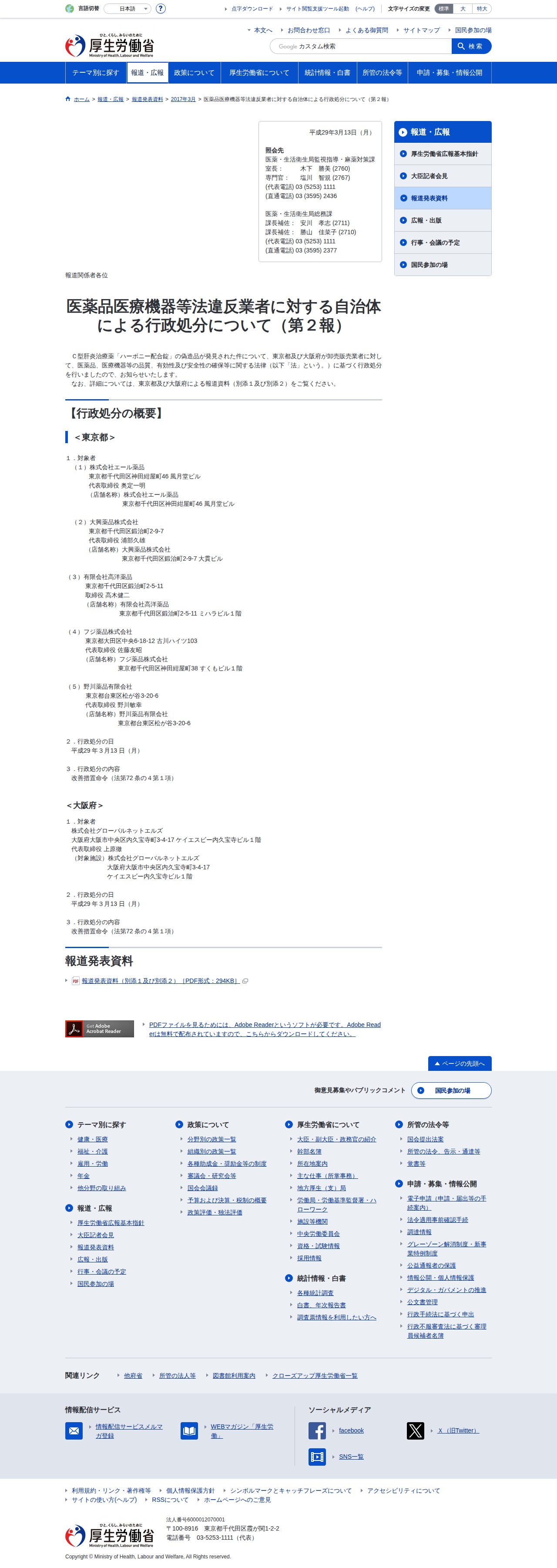 医薬品医療機器等法違反業者に対する自治体による行政処分について(第2報)|厚生労働省
