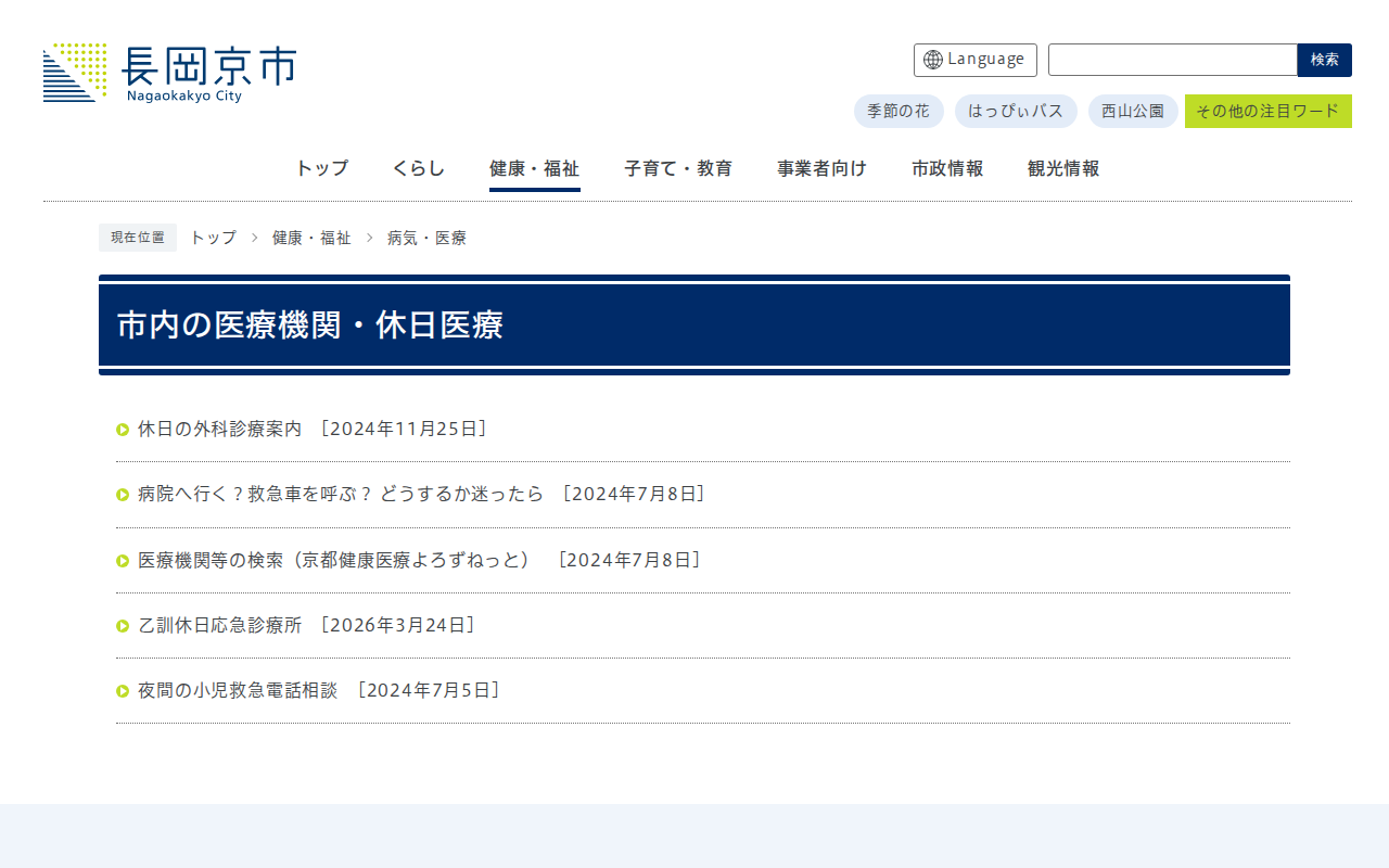 市内の医療機関・休日医療 | 長岡京市公式ホームページ