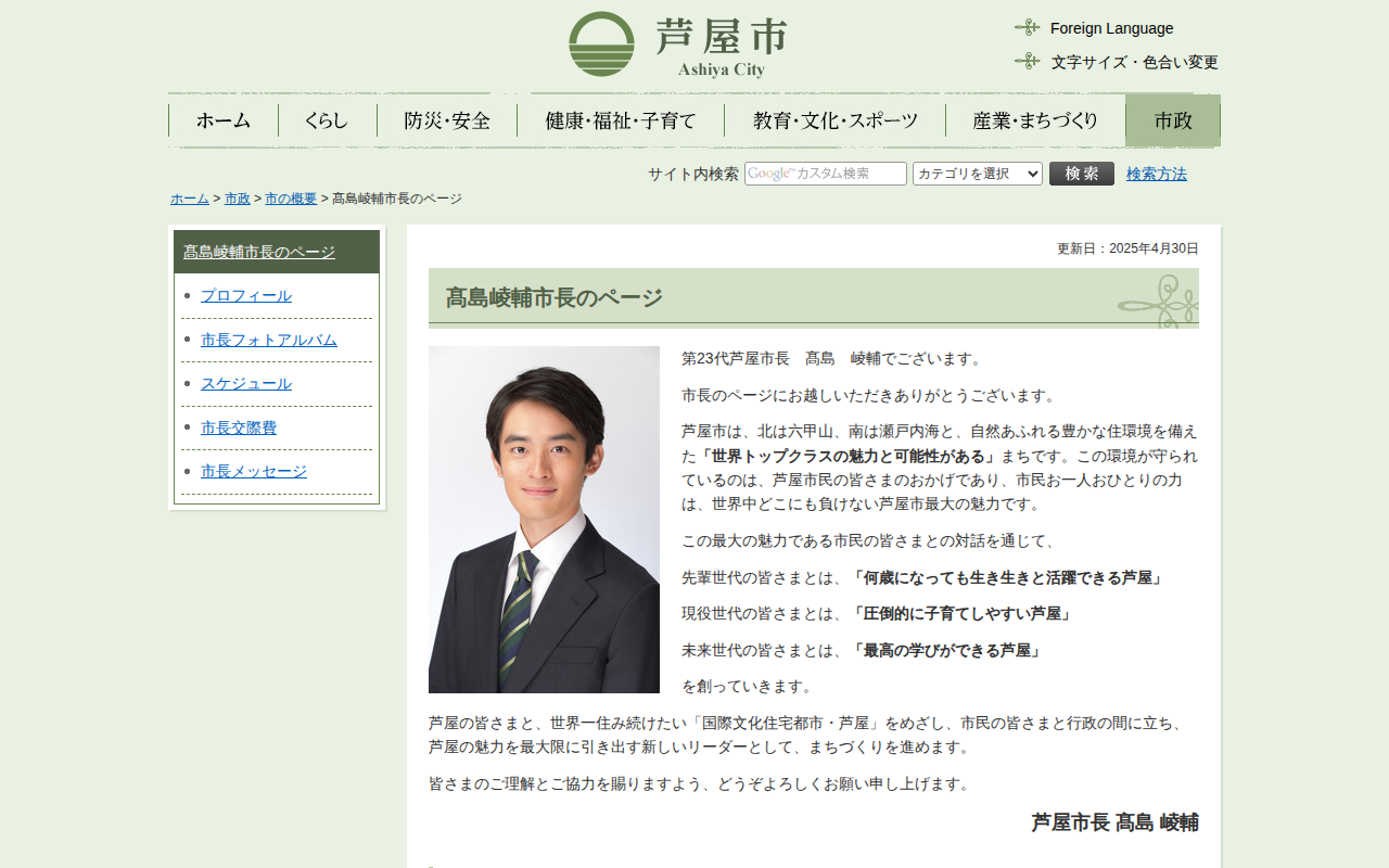 https://www.city.ashiya.lg.jp/hisho/shisei/shichou/index_2019.html2026年4月9日 07:09 JST•アーカイブページ・viewer・ダウンロードは、この保存版を基準に表示されます。