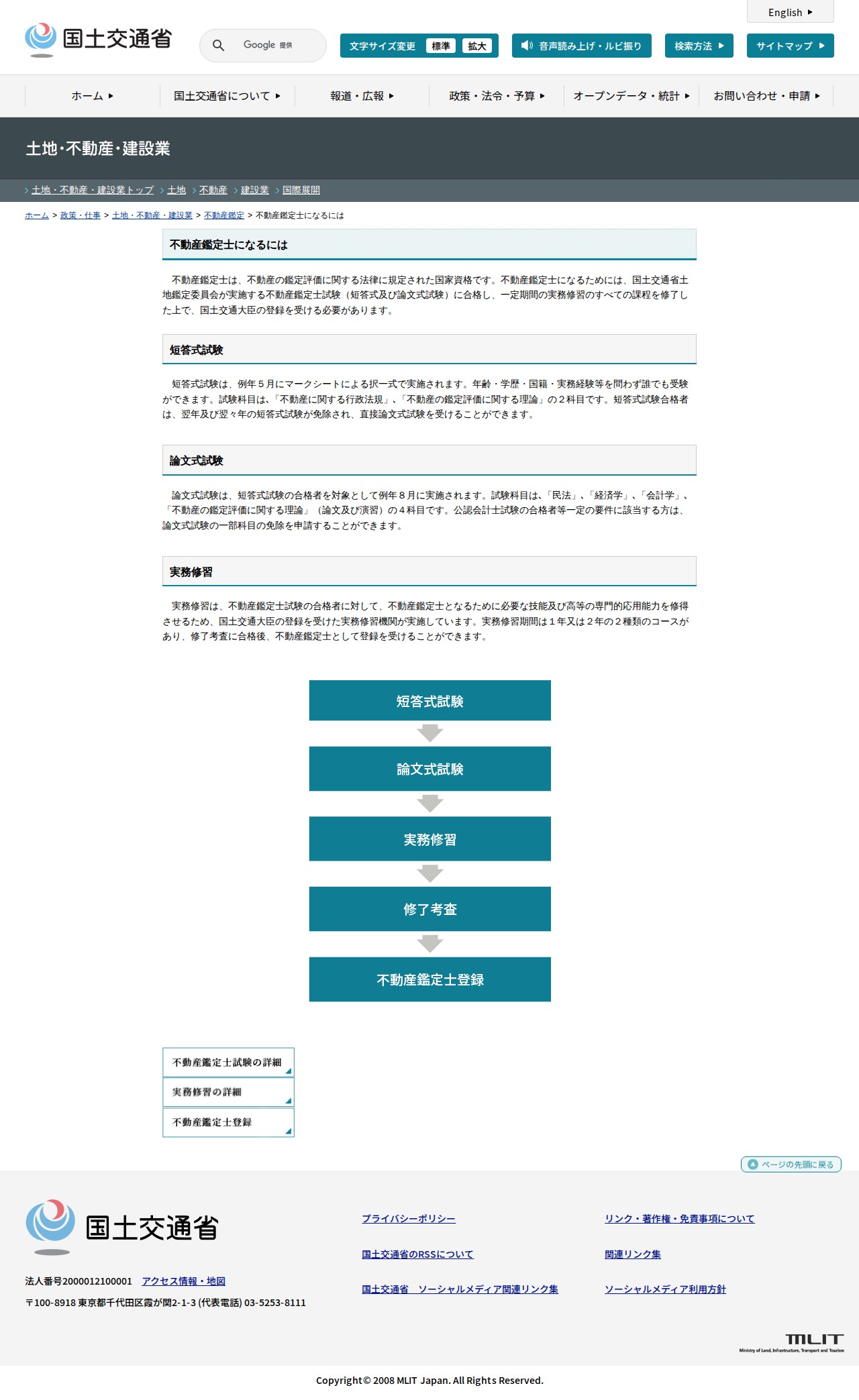 土地・不動産・建設業:不動産鑑定士になるには - 国土交通省