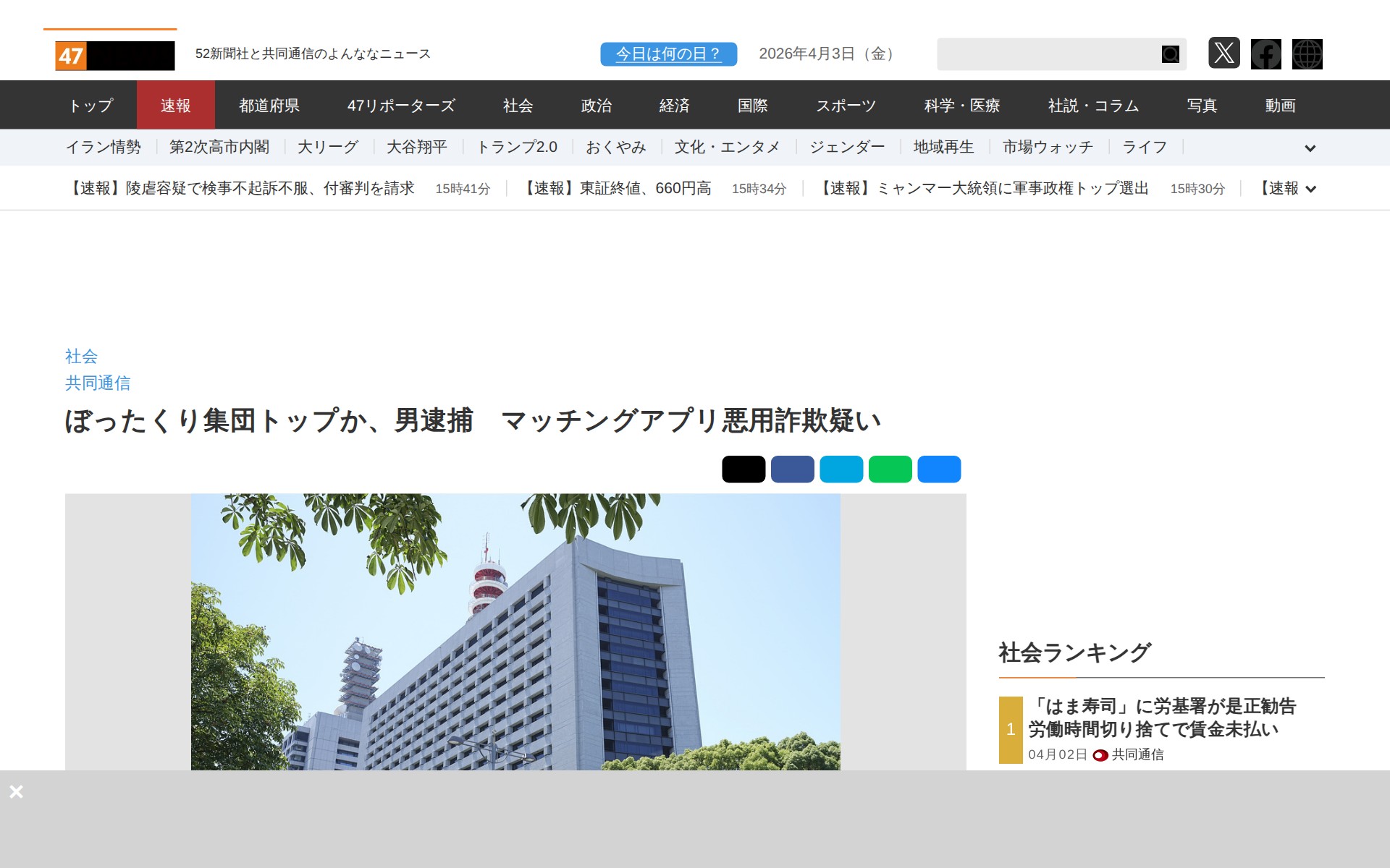 ぼったくり集団トップか、男逮捕 マッチングアプリ悪用詐欺疑い|47NEWS(よんななニュース)