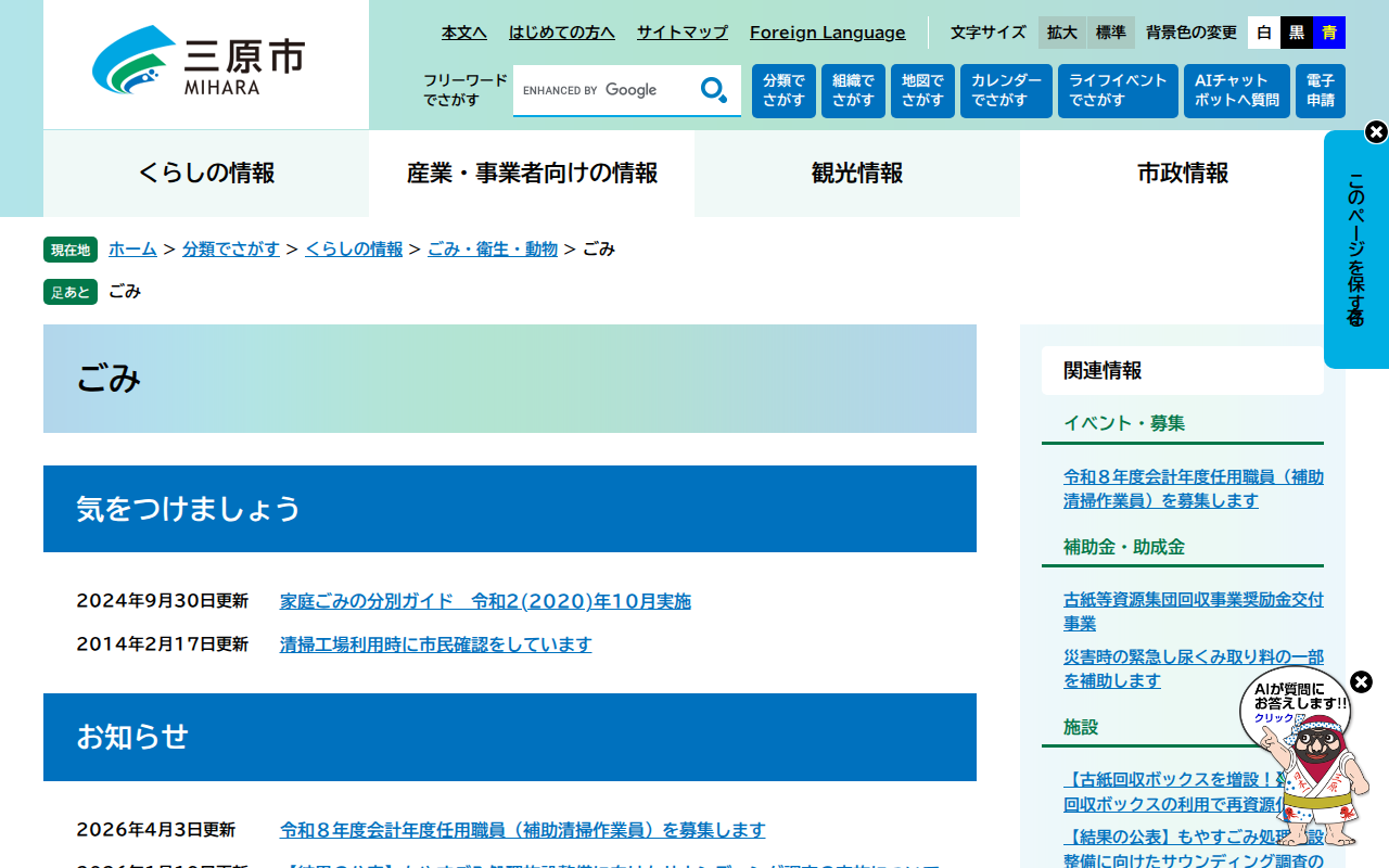 ごみ - 三原市ホームページ - 保存されたスクリーンショット