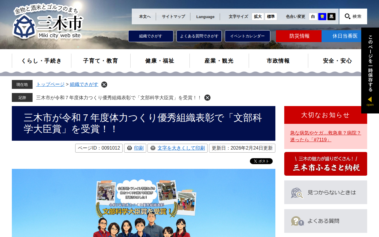 三木市が令和7年度体力つくり優秀組織表彰で「文部科学大臣賞」を受賞!! - 三木市ホームページ