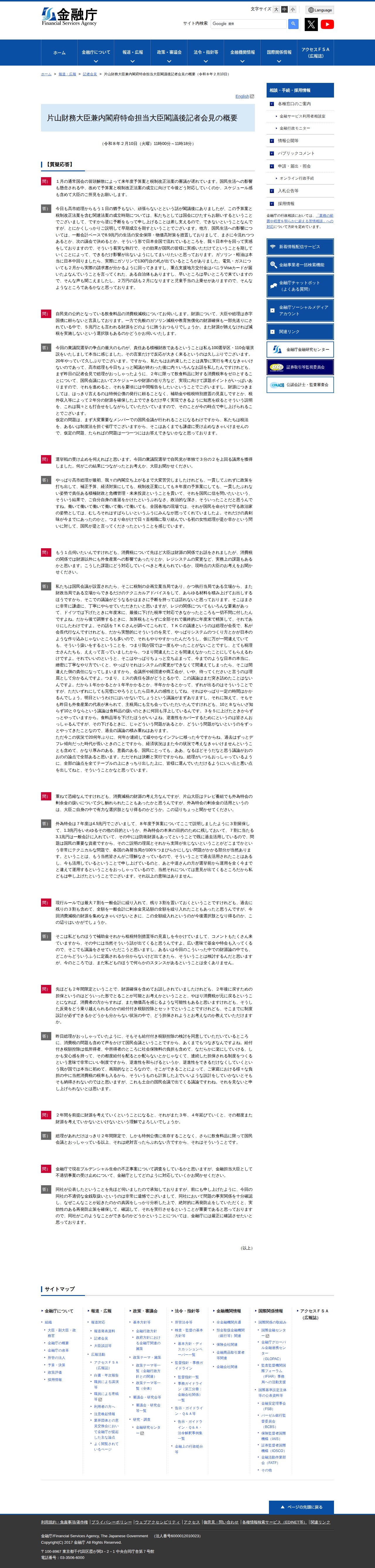 片山財務大臣兼内閣府特命担当大臣閣議後記者会見の概要(令和8年2月10日):金融庁