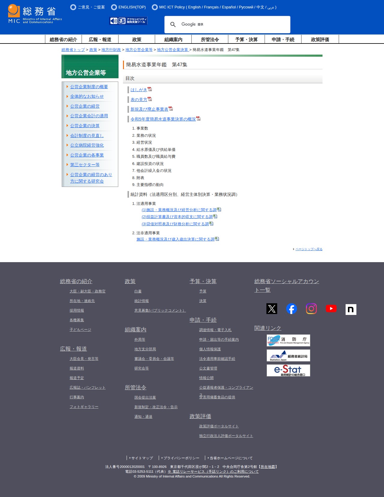 総務省|地方公営企業等|簡易水道事業年鑑 第47集
