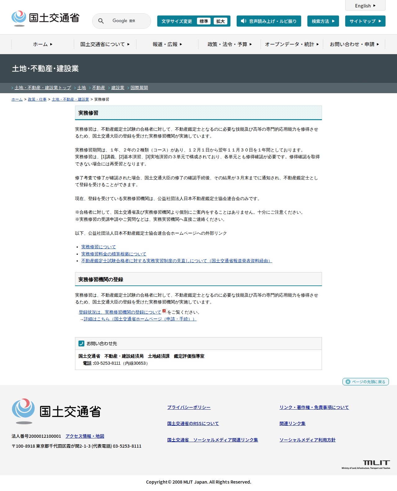 土地・不動産・建設業:実務修習 - 国土交通省 - 保存されたスクリーンショット