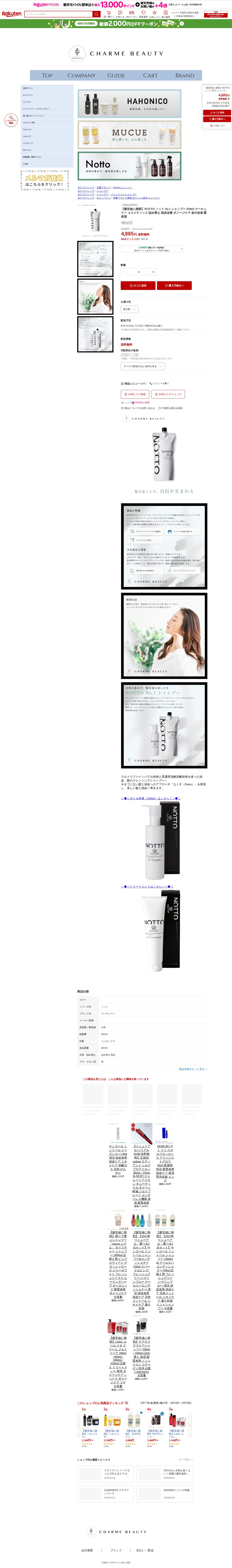 このページは、楽天市場で販売されているNOTTO(ノット)No.1シャンプー650ml詰め替え用の商品紹介ページです。マーキュリーコスメティック製のこの美容室専売シャンプーは、4,885円(送料無料)で販売されており、ウルトラファインバブル技術と高濃度溶解炭酸技術を使用しています。頭皮改善、ダメージケア、血行促進、髪保湿などの効果が期待でき、ノンシリコンシャンプーです。日本製で、ユニセックス対象の商品となっています。