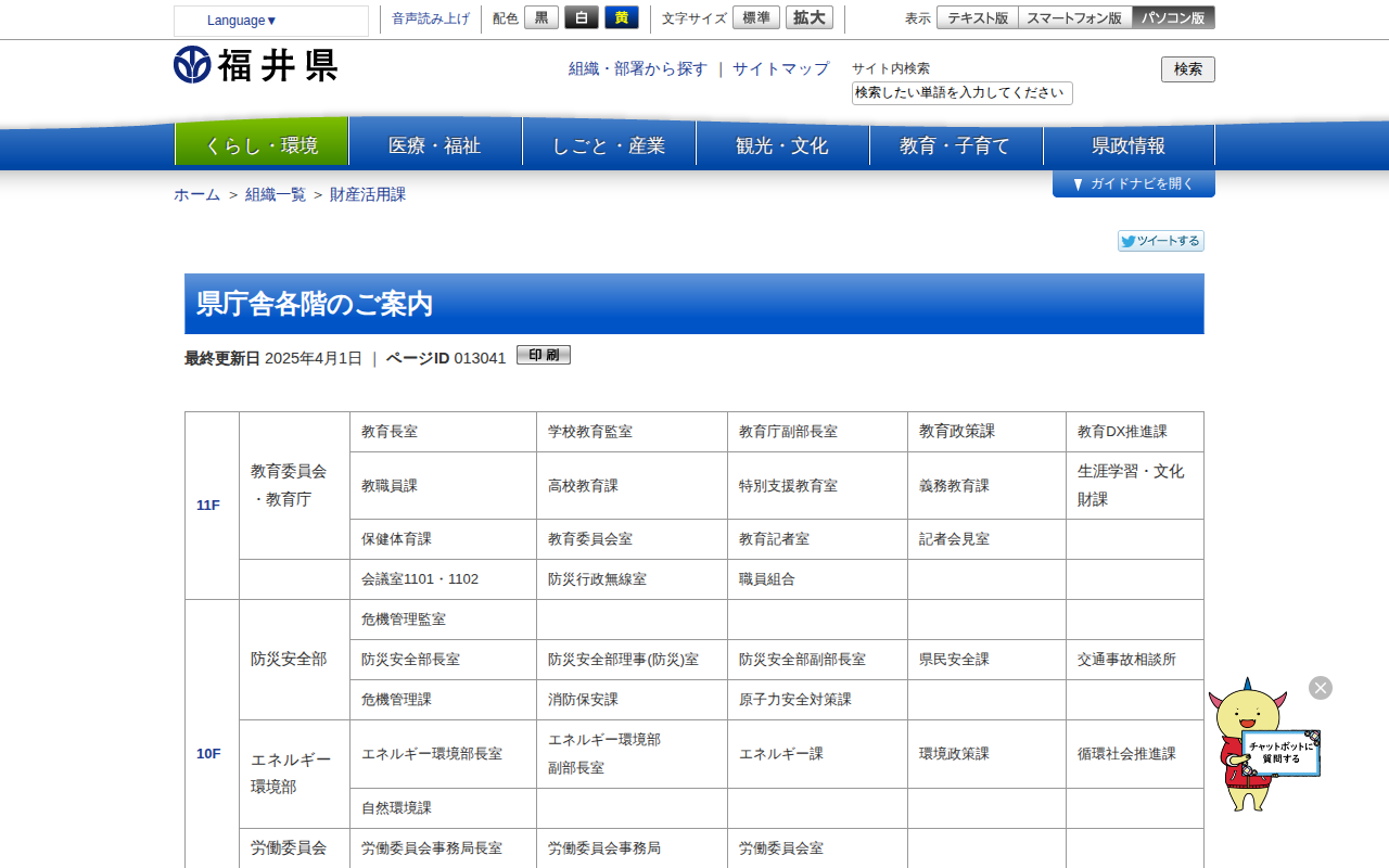 県庁舎各階のご案内 | 福井県ホームページ