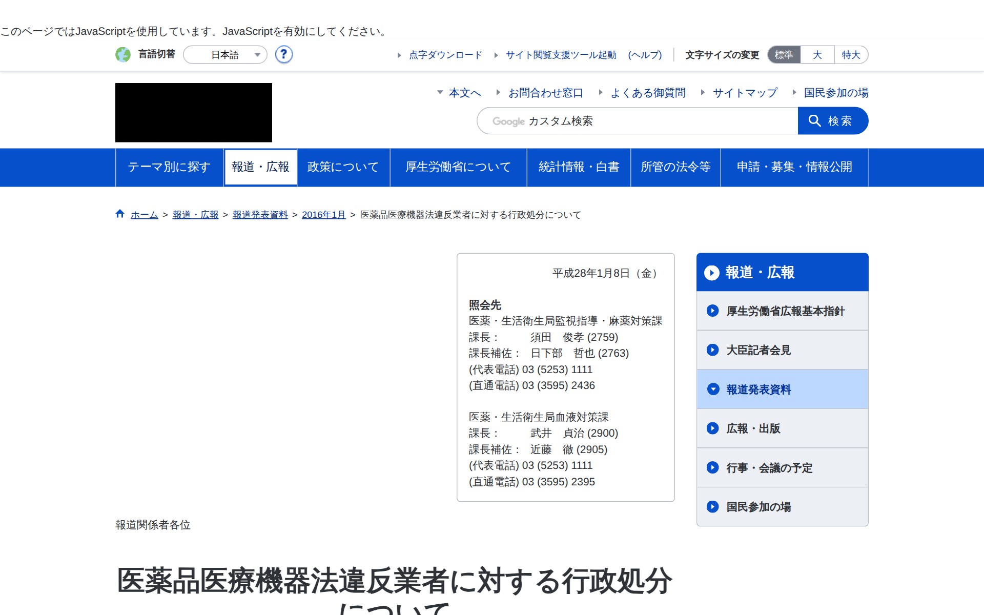 医薬品医療機器法違反業者に対する行政処分について|厚生労働省
