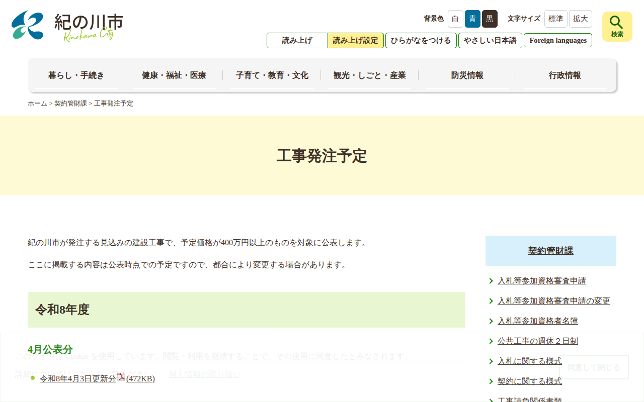工事発注予定|紀の川市