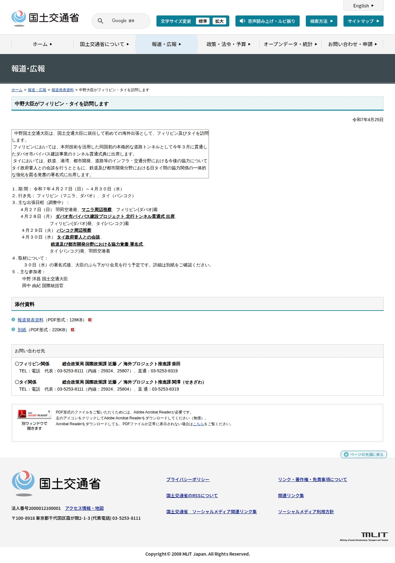 報道発表資料:中野大臣がフィリピン・タイを訪問します - 国土交通省