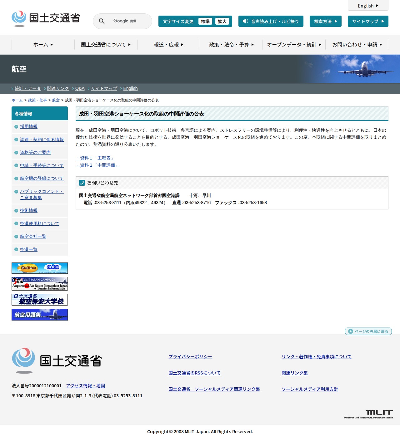 航空:成田・羽田空港ショーケース化の取組の中間評価の公表 - 国土交通省 - 保存されたスクリーンショット
