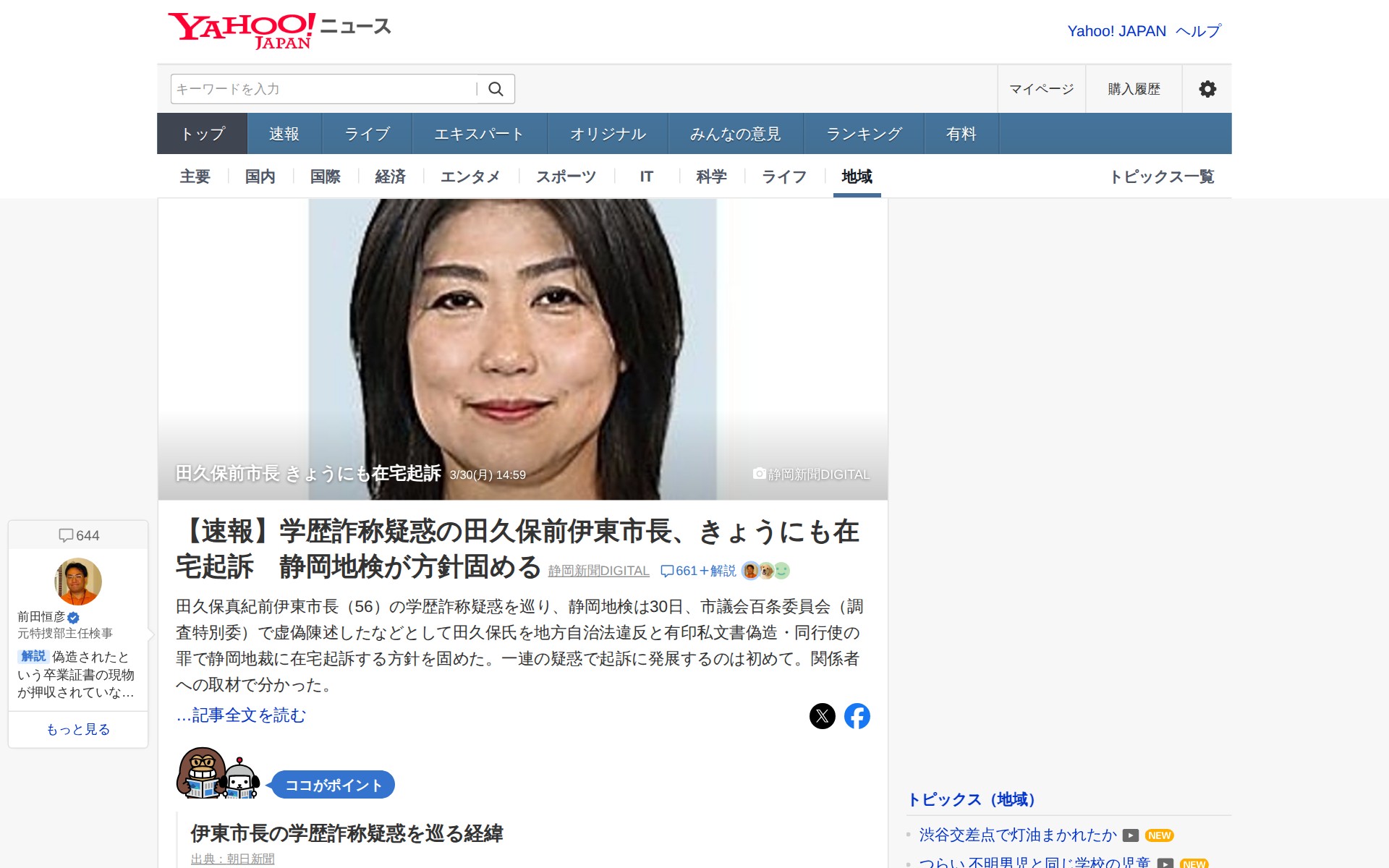 田久保前市長 きょうにも在宅起訴 - Yahoo!ニュース