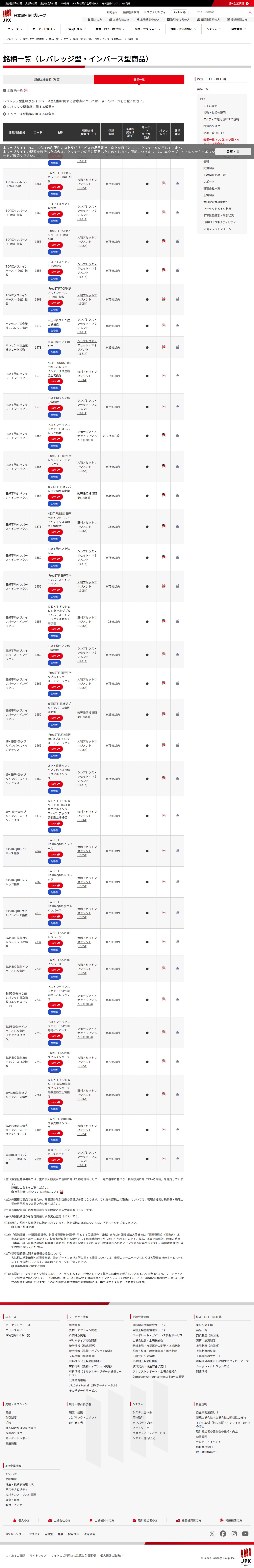 銘柄一覧 | 銘柄一覧(レバレッジ型・インバース型商品) | 日本取引所グループ