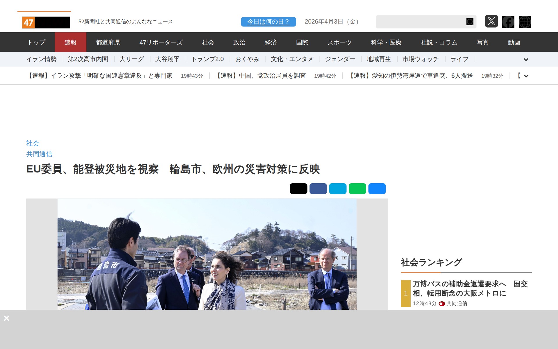 EU委員、能登被災地を視察 輪島市、欧州の災害対策に反映|47NEWS(よんななニュース)