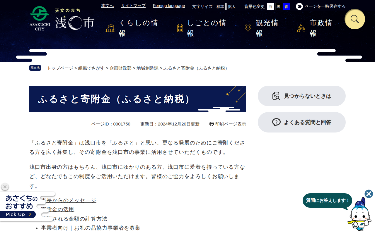 ふるさと寄附金(ふるさと納税) - 浅口市公式ホームページ(地域創造課) - 保存されたスクリーンショット