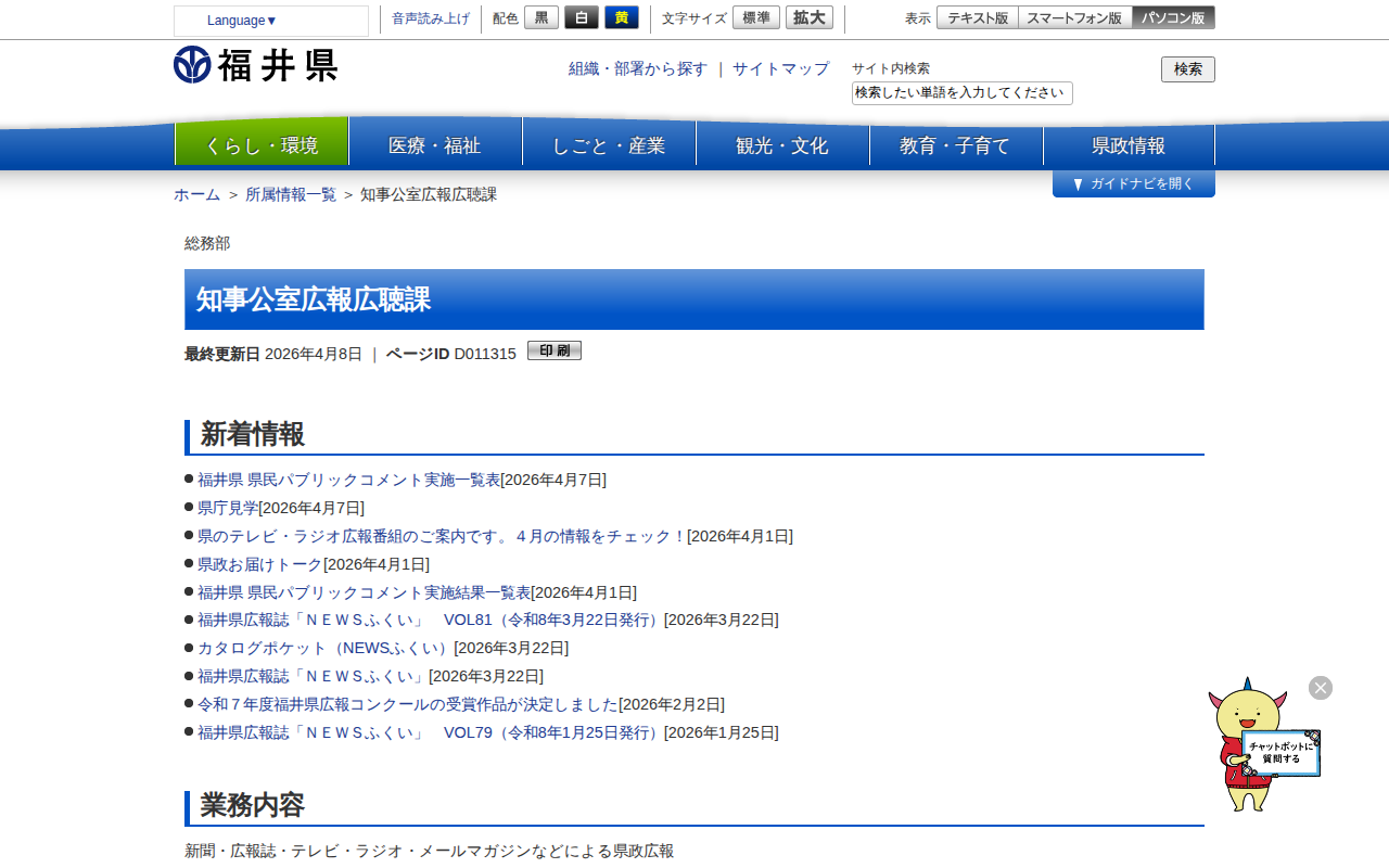 知事公室広報広聴課 | 福井県ホームページ