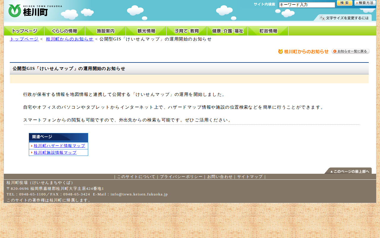 公開型GIS「けいせんマップ」の運用開始のお知らせ-お知らせ-福岡県嘉穂郡桂川町公式ホームページ