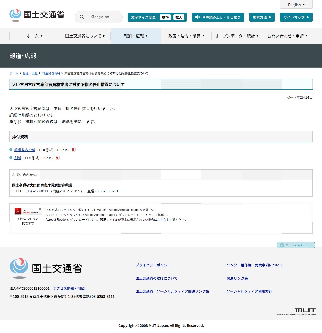 報道発表資料:大臣官房官庁営繕部有資格業者に対する指名停止措置について - 国土交通省