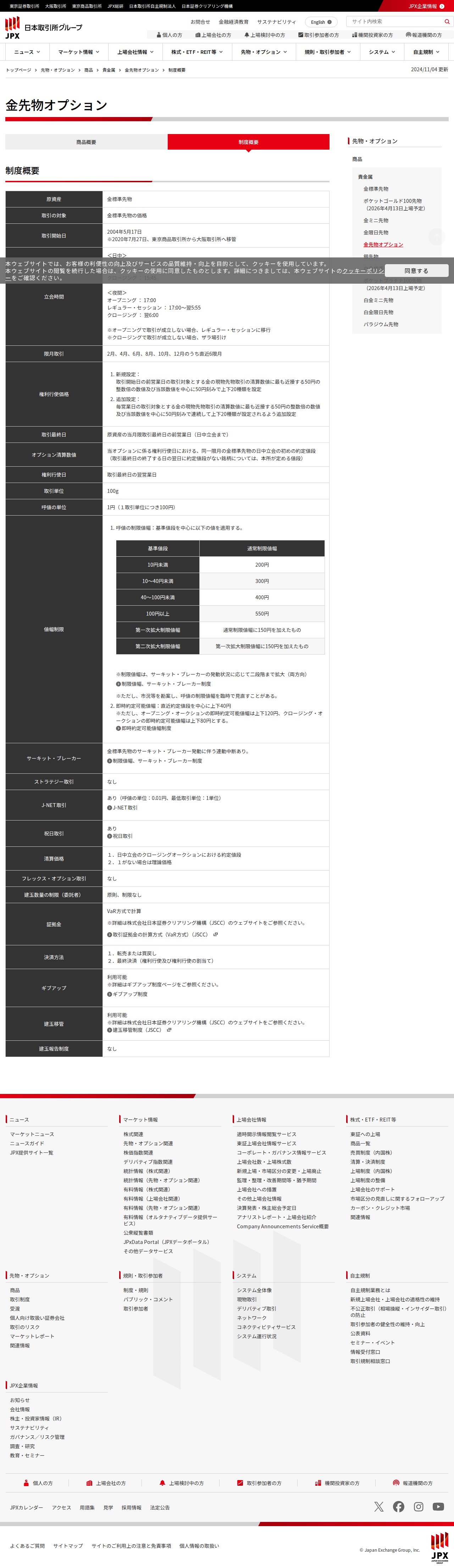 https://www.jpx.co.jp/derivatives/products/precious-metals/options-on-gold-futures/01.html2026年4月8日 01:38 JST•アーカイブページ・viewer・ダウンロードは、この保存版を基準に表示されます。