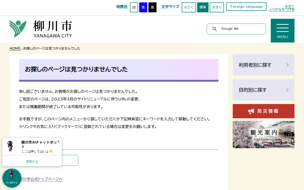 2026年4月9日 01:21 JST·www.city.yanagawa.fukuoka.jp
