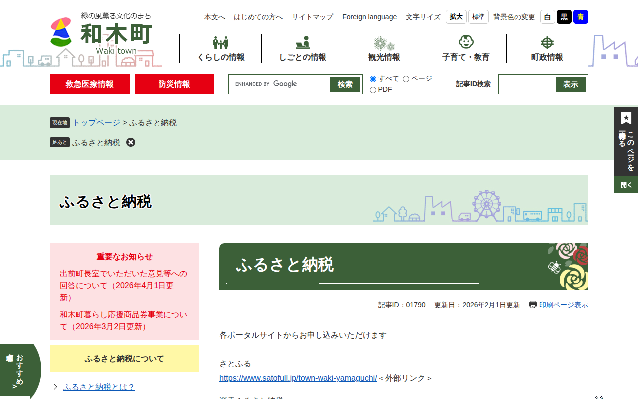 ふるさと納税 - 和木町ホームページ