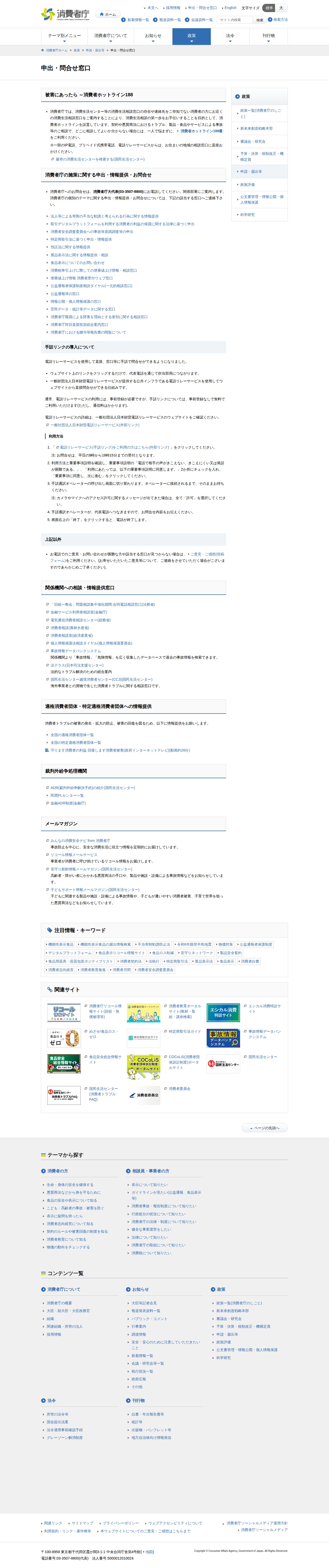 申出・問合せ窓口 | 消費者庁