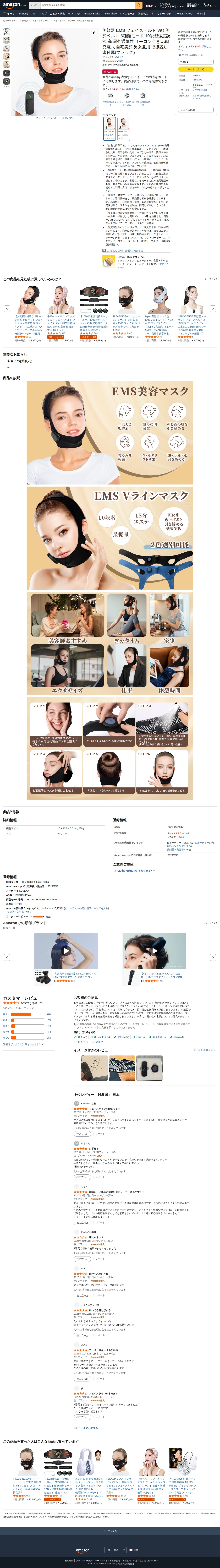 Amazon.co.jp: 美顔器 EMS フェイスベルト V顔 美顔ベルト 6種類モード 10段階強度調節 高弾性 通気性 リモコン付きUSB充電式 自宅美顔 男女兼用 取扱説明書付属(ブラック) : ホーム&キッチン - 保存されたスクリーンショット