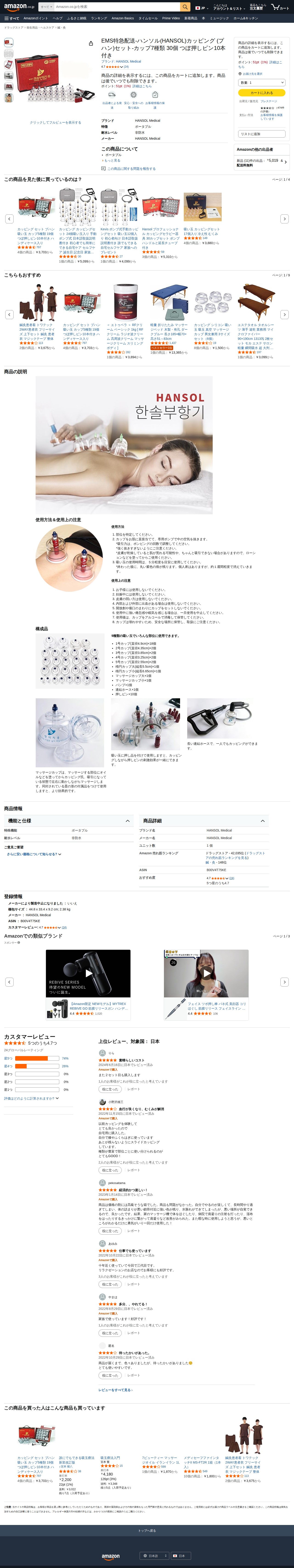 Amazon.co.jp: EMS特急配送-ハンソル(HANSOL)カッピング (プハン)セット-カップ7種類 30個 つぼ押しピン10本付き : ドラッグストア