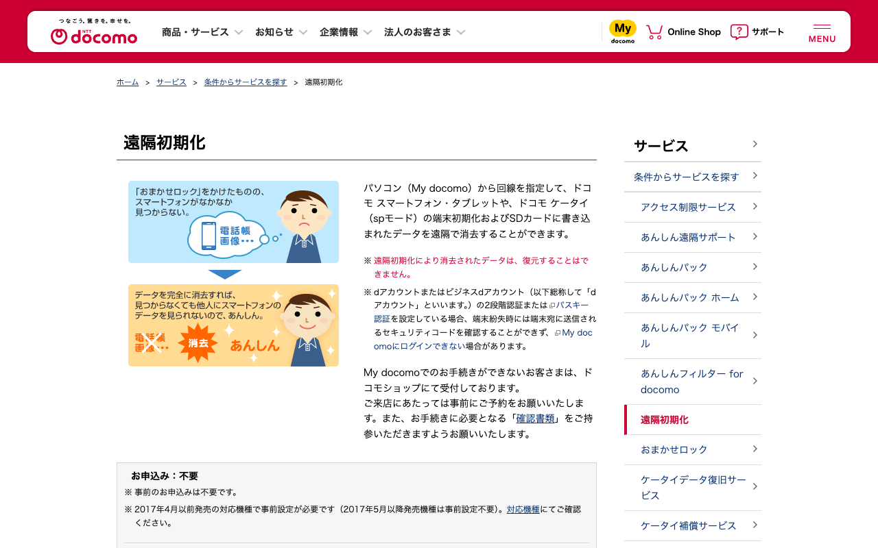遠隔初期化 | サービス | NTTドコモ