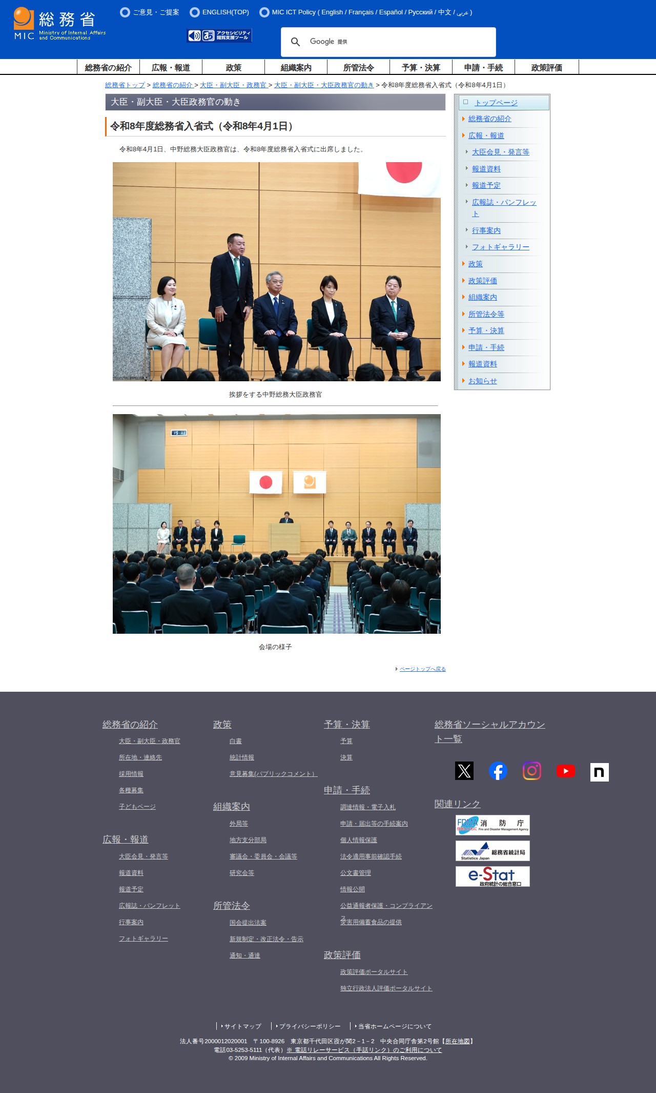 総務省|令和8年度総務省入省式(令和8年4月1日)
