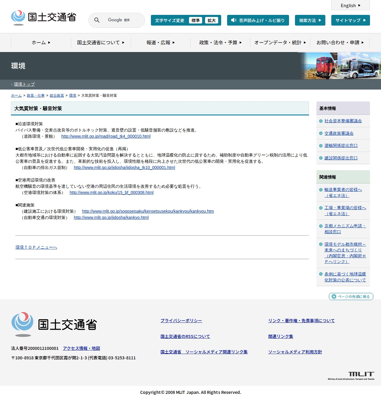 環境:大気質対策・騒音対策 - 国土交通省 - 保存されたスクリーンショット
