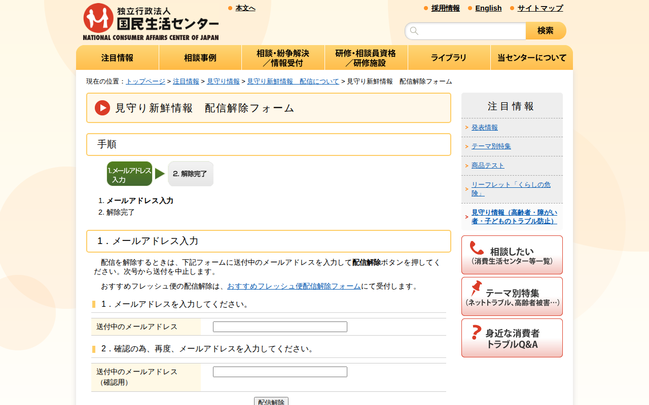 見守り新鮮情報 配信解除フォーム_国民生活センター
