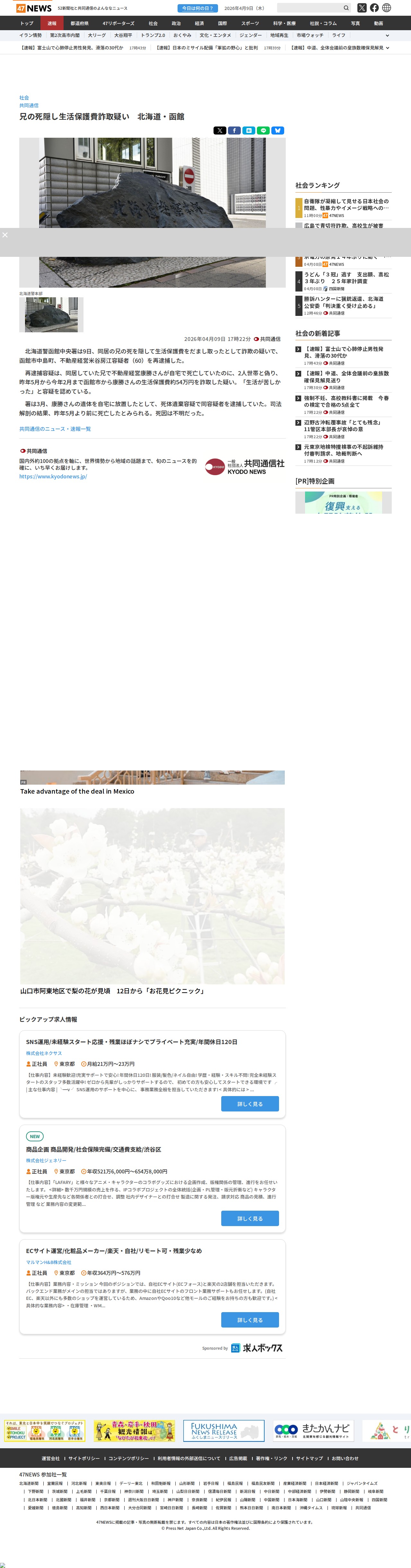 兄の死隠し生活保護費詐取疑い 北海道・函館|47NEWS(よんななニュース)