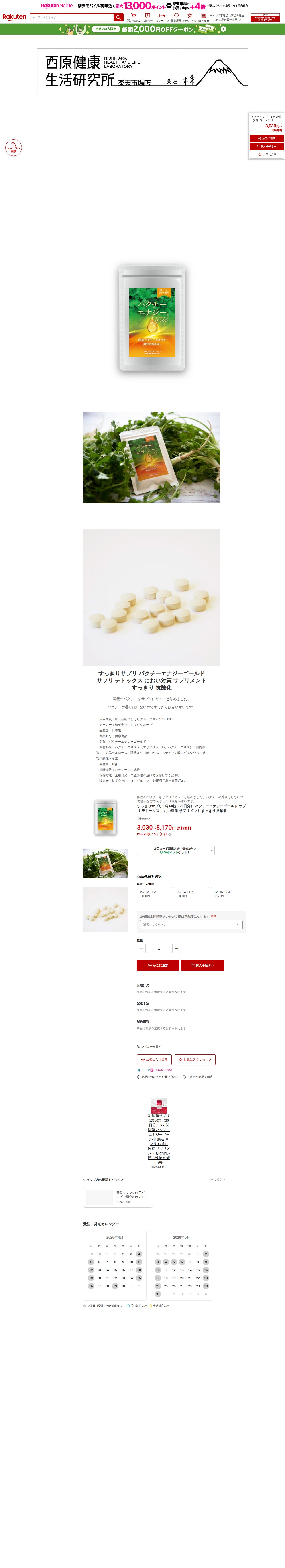 このページは、楽天市場で販売されている「パクチーエナジーゴールド」というサプリメント商品の紹介ページです。国産パクチーを濃縮したサプリで、1袋60粒(20日分)が3,030円から購入できます。デトックスや抗酸化作用、におい対策を目的とした健康食品で、パクチーの香りがしないため飲みやすいのが特徴です。西原健康生活研究所による日本製で、複数袋セット購入も可能です。