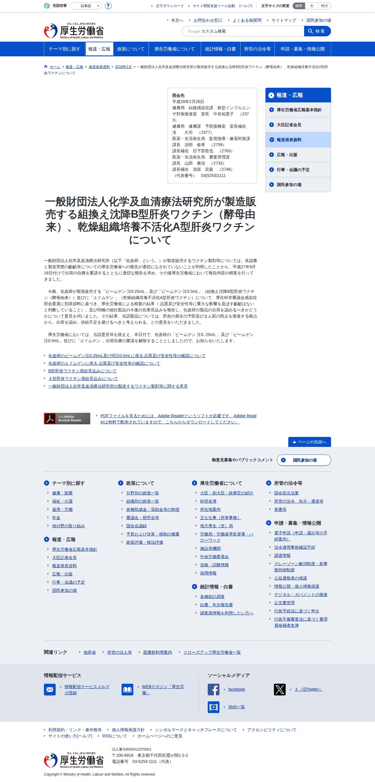 一般財団法人化学及血清療法研究所が製造販売する組換え沈降B型肝炎ワクチン(酵母由来)、乾燥組織培養不活化A型肝炎ワクチンについて|厚生労働省