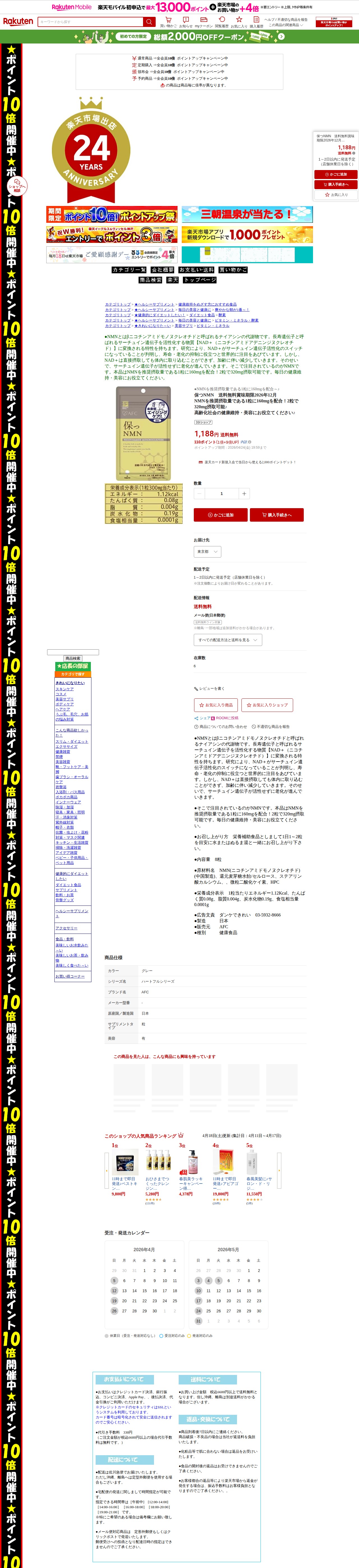 【楽天市場】保つNMN 送料無料賞味期限2026年12月NMNを推奨摂取量である1粒に160mgを配合!2粒で320mg摂取可能♪高齢化社会の健康維持・美容にお役立てください♪:ダンケできれい - 保存されたスクリーンショット