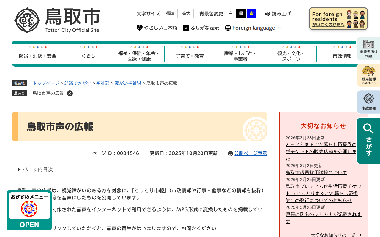 鳥取市声の広報 - 鳥取市公式ホームページ(障がい福祉課) - 保存されたスクリーンショット