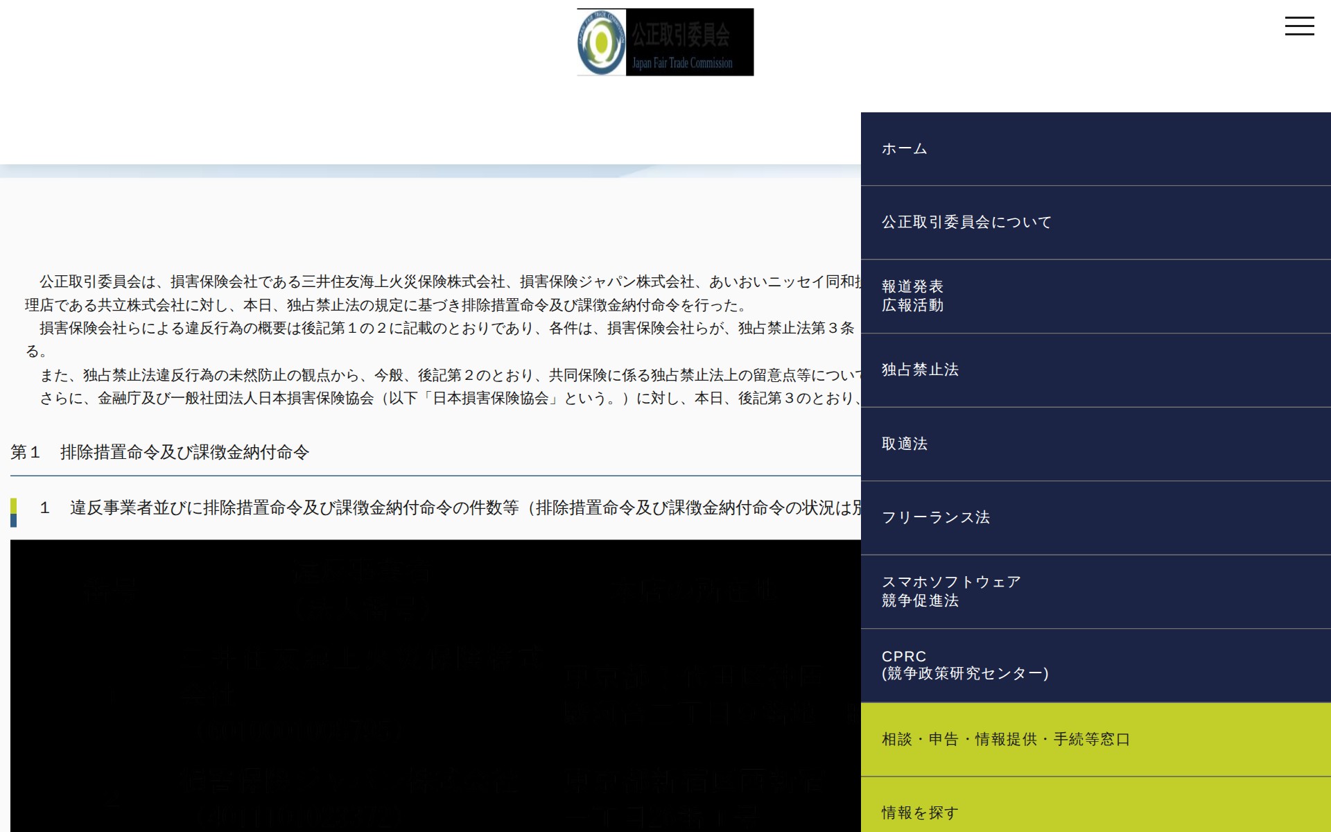 (令和6年10月31日)損害保険会社らに対する排除措置命令及び課徴金納付命令等について | 公正取引委員会