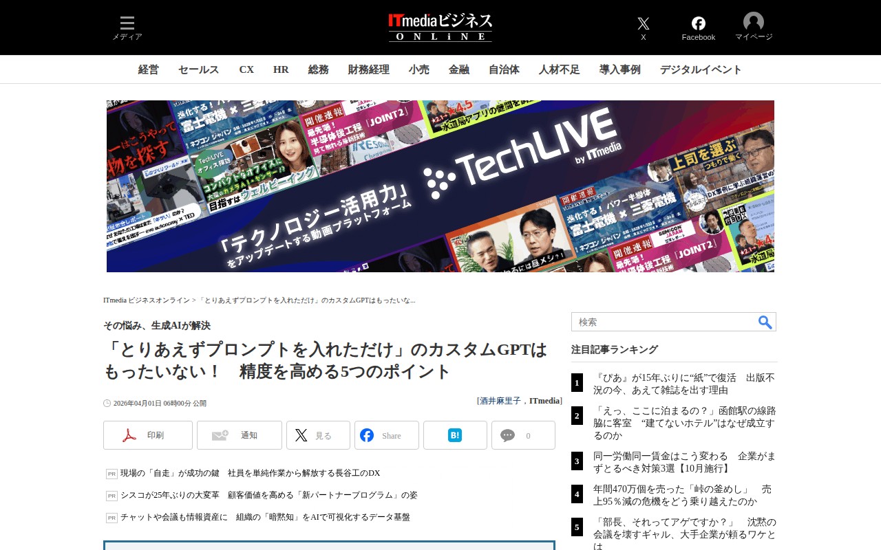 「とりあえずプロンプトを入れただけ」のカスタムGPTはもったいない! 精度を高める5つのポイント:その悩み、生成AIが解決 - ITmedia ビジネスオンライン