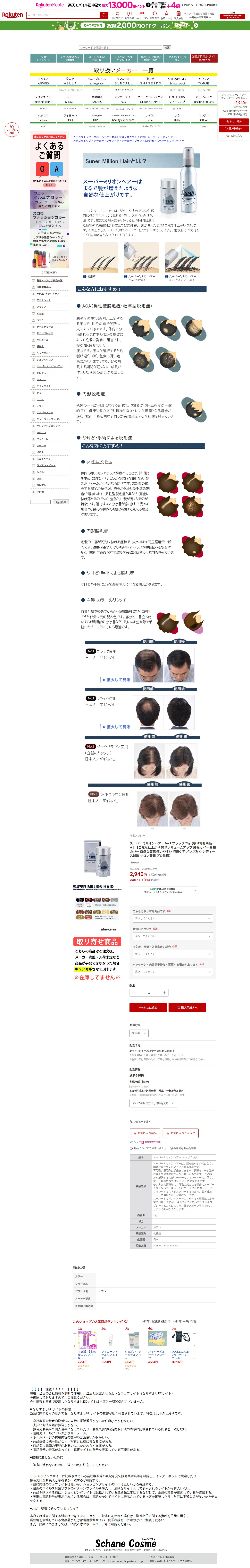 【楽天市場】スーパーミリオンヘアー No.1 ブラック 20g【取り寄せ商品A】【自然な仕上がり 簡単ボリュームアップ 薄毛カバー 白髪カバー 自然な質感 使いやすい 時短ケア メンズ対応 レディース対応 サロン専売 プロ仕様】:シェーンコスメ - 保存されたスクリーンショット