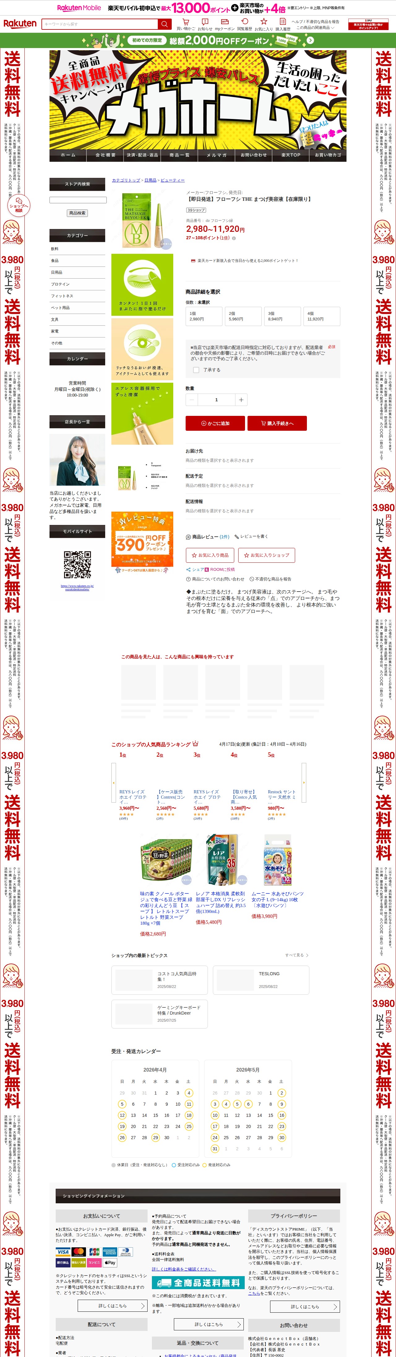 【楽天市場】【即日発送】フローフシ THE まつげ美容液【在庫限り】:メガホーム - 保存されたスクリーンショット