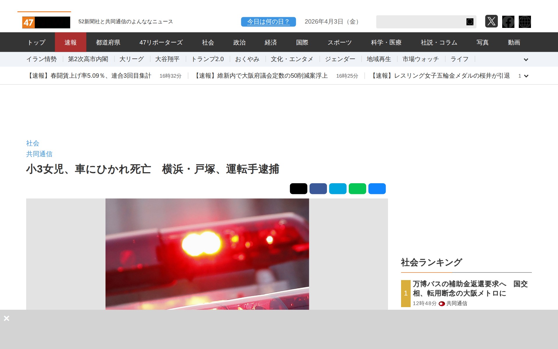 小3女児、車にひかれ死亡 横浜・戸塚、運転手逮捕|47NEWS(よんななニュース)