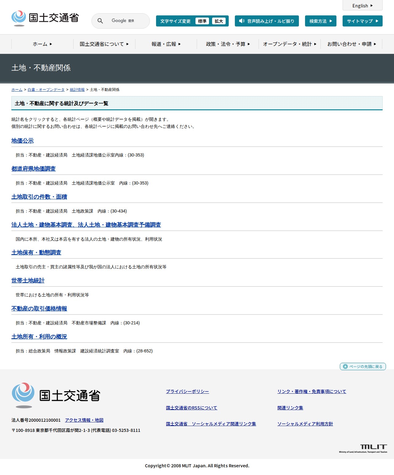 土地・不動産に関する統計及びデータ一覧 - 国土交通省
